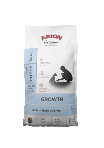ARION Growth Puppy Small Kana on täysravinto pienikokoisten koirien pennuille. Arion Puppy on erityisesti valmistettu pennun ravitsemuksellisiin tarpeisiin tukemaan optimaalista kasvua ja kehitystä ja se tukee lisäksi pentusi oppimista sekä tervettä immuunijärjestelmää.